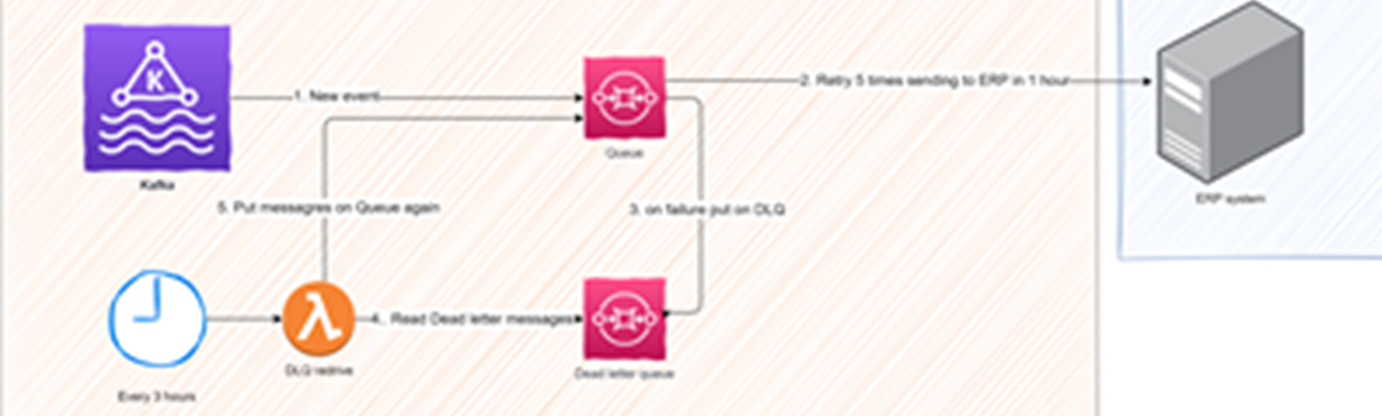 At first, we started with a very basic exponential backoff of approximately an hour. After that the message would go on a dead letter queue and an alert would be raised, requiring manual intervention.